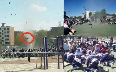 সম্প্রতি চীনের জিউকুয়ানের একটি স্কুলে এ ভয়ংকর ঘটনা ঘটেছে। ওই সময় স্কুল মাঠে ছোট ছোট ছাত্র-ছাত্রীরা জড়ো হয়েছিল তাদের স্কুলের স্পোর্টস ডের অনুষ্ঠানে। অনুষ্ঠান শুরু হওয়ার আগেই হঠাৎ টর্নেডো এসে সব ল-ভ- করে দেয়। ছাত্র-ছাত্রীদের জিনিসপত্র উড়িয়ে নিয়ে যায়। এ সময় ওই ছোট শিক্ষার্থীকেও উড়িয়ে নিয়ে যায় টর্নেডো।